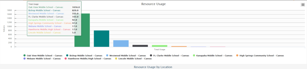 With the nearly 1.5 million times that these digital content and resources were used in the 2018-19 school year, having the ability to drill into this usage from a variety of perspectives becomes increasingly critical. This dashboard allows the user analyze a very broad or specific data report. It can be filtered by a variety of combinations of options including school(s), application(s), date range and time of day.